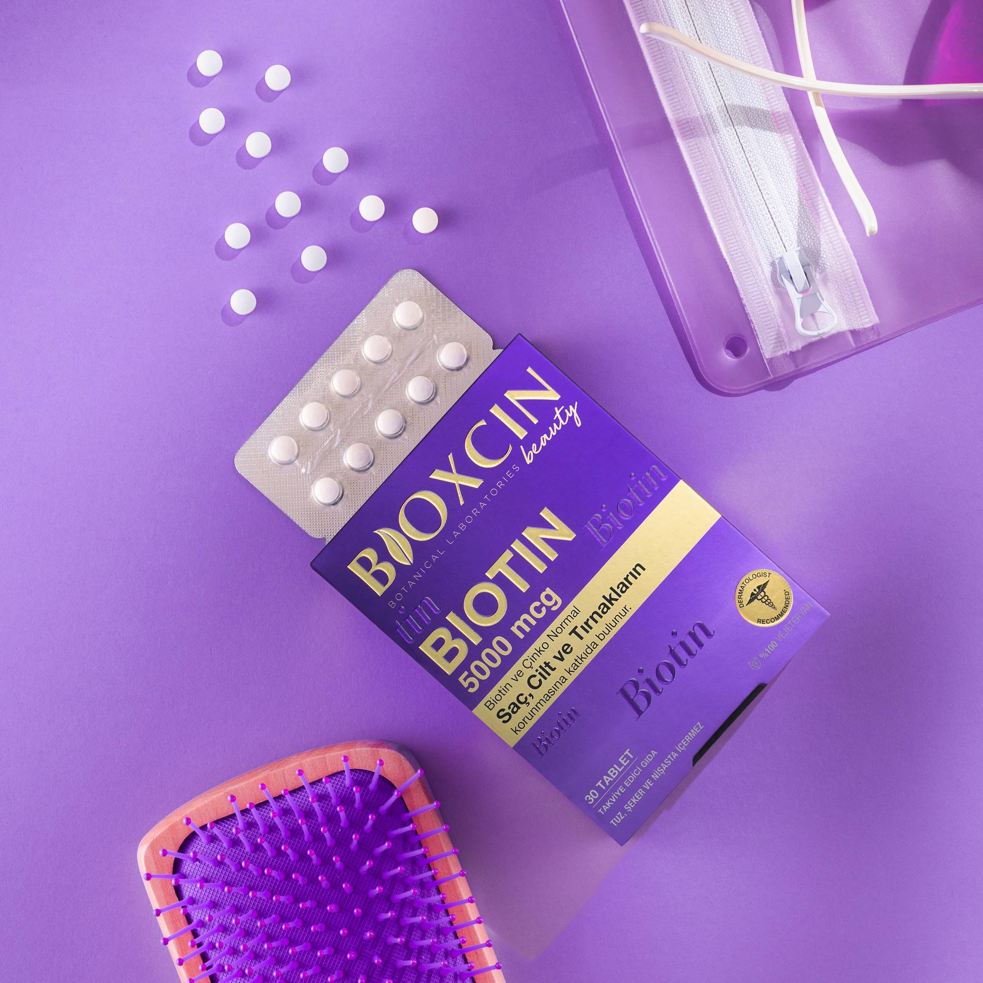Bioxcin Biotin Tablet is a dietary supplement that contains biotin and zinc. It helps support the health of hair, skin, and nails.
