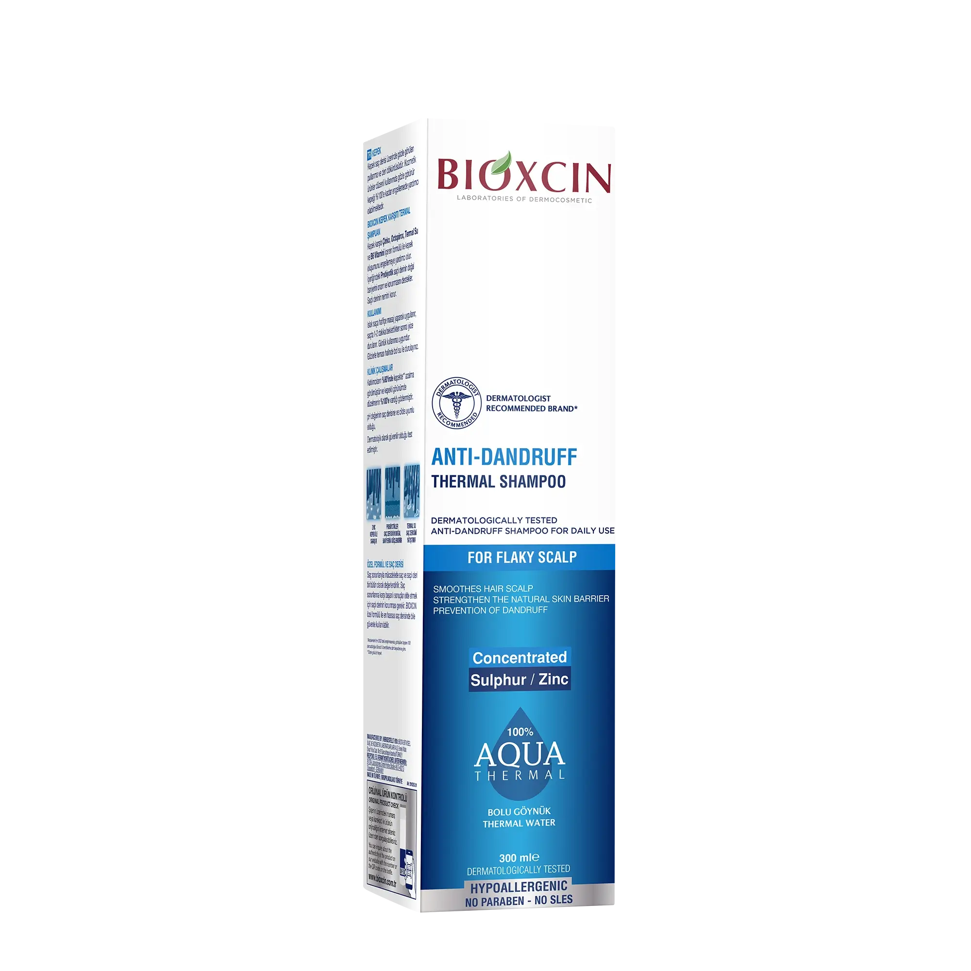 Bioxcin Aqua Thermal Anti-Dandruff Shampoo, enriched with zinc, helps restore the scalp's structure disrupted by dandruff to a normal and healthy state and supports the prevention of dandruff with regular use. The Bolu Göynük Thermal Water, rich in sulfur, plays an extra role in combating dandruff and refreshes the scalp. With probiotics, it strengthens the skin's natural barrier while nourishing the hair and scalp. Additionally, Vitamin B6 reduces itchiness caused by dandruff and contributes to the formation of a healthy scalp.